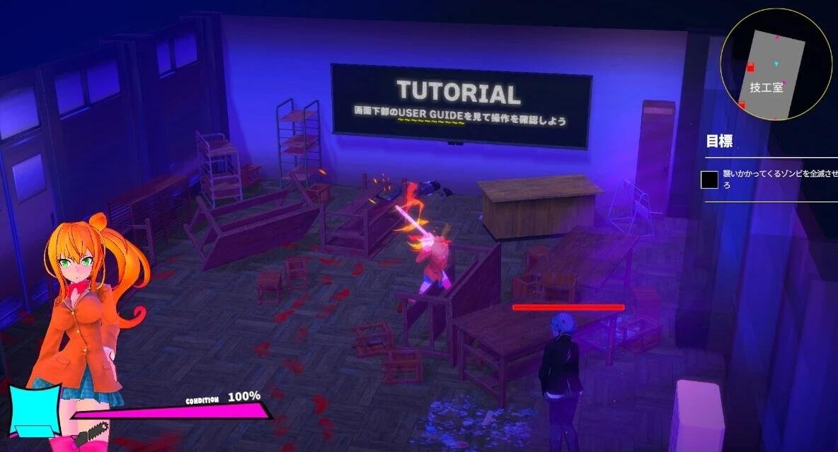 全3D进行,有过场动画,支持手柄,操作女主从僵尸化的校园里逃生吧!